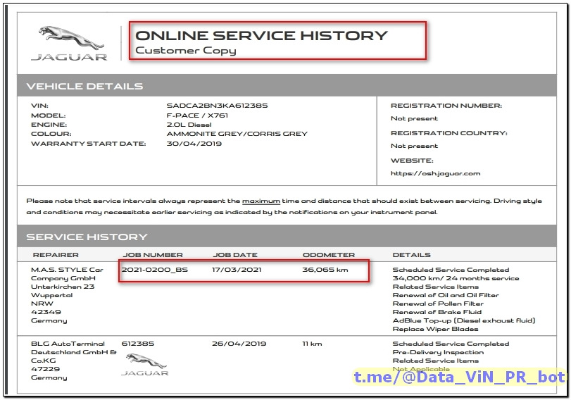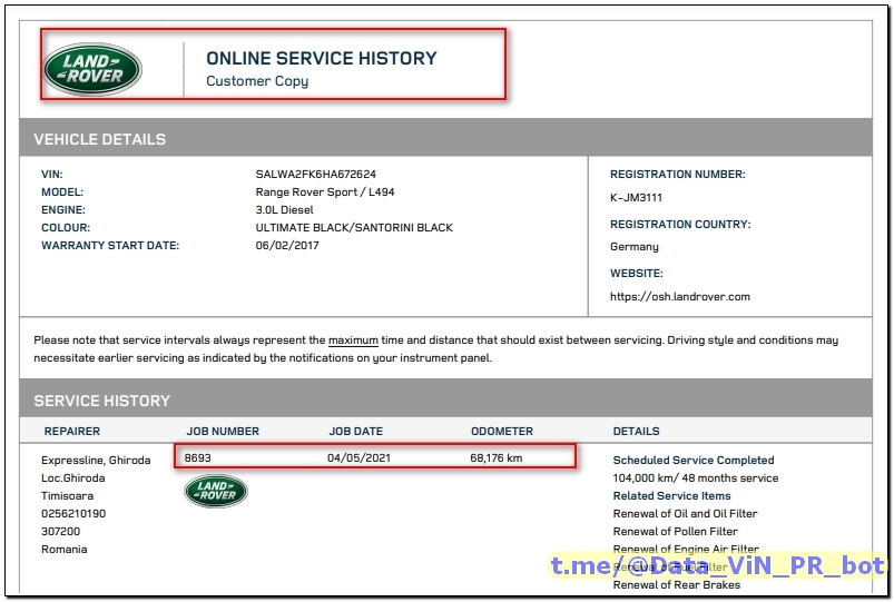 ✅ История обслуживания Jaguar, Land Rover по VIN