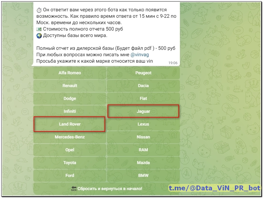 - Отправляете боту VIN номер